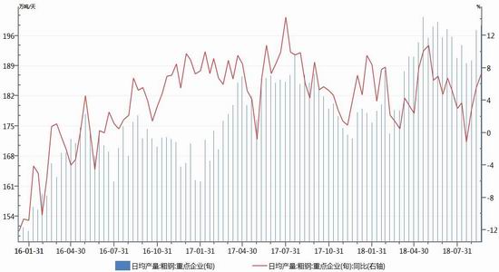 由于鐵礦持續(xù)弱勢(shì),三季度鋼廠利潤(rùn)再度攀升,進(jìn)入九月后,螺紋現(xiàn)貨噸鋼毛利維持在1000元/噸上方,鋼鐵行業(yè)盈利比例繼續(xù)維持在82%上方,在持續(xù)盈利且利潤(rùn)長(zhǎng)期維持高位的背景下,鋼廠實(shí)際供給已經(jīng)達(dá)到目前能夠達(dá)到的頂峰,根據(jù)統(tǒng)計(jì),截至10月19日,國(guó)內(nèi)主要鋼廠開(kāi)工率為68.37%,唐山地區(qū)高爐開(kāi)工率為60.37%,與此同時(shí)鋼產(chǎn)量卻仍維持高位,據(jù)中鋼協(xié)統(tǒng)計(jì),2018年10月上旬會(huì)員鋼企粗鋼日均產(chǎn)量198.74萬(wàn)噸,旬環(huán)比增加0.26萬(wàn)噸,上漲0.13%;全國(guó)預(yù)估日均產(chǎn)量252.14萬(wàn)噸,旬環(huán)比升0.21萬(wàn)噸,漲幅0.08%。